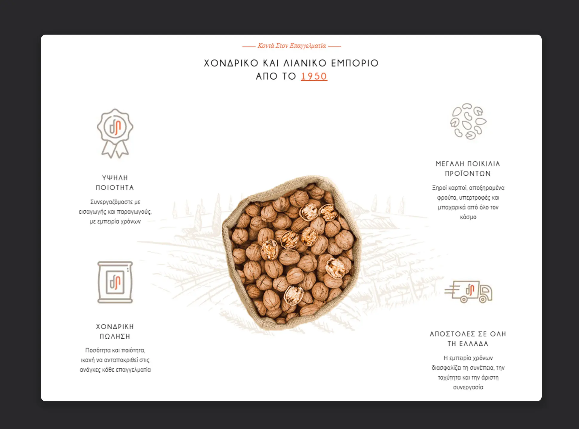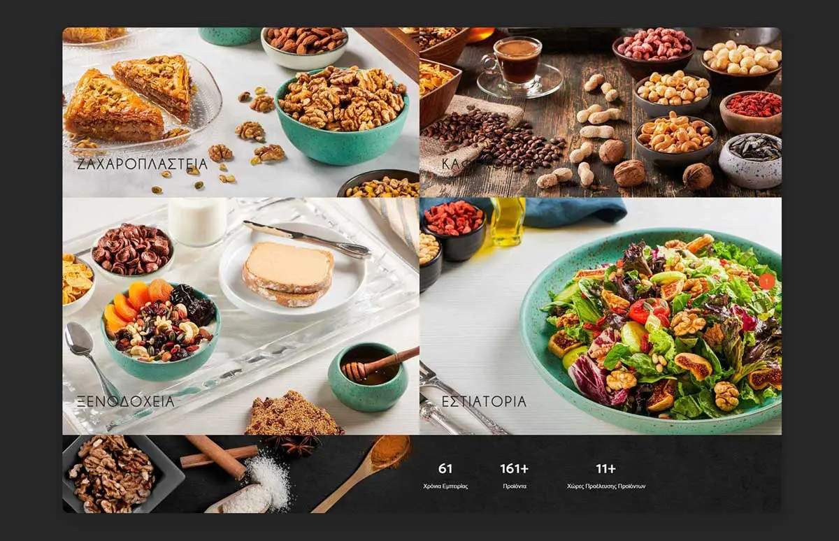 Φιλική προς πελάτες κατασκευή ιστοσελίδας Β2B εμπορίου ξηρών καρπών στη Θεσσαλονίκη